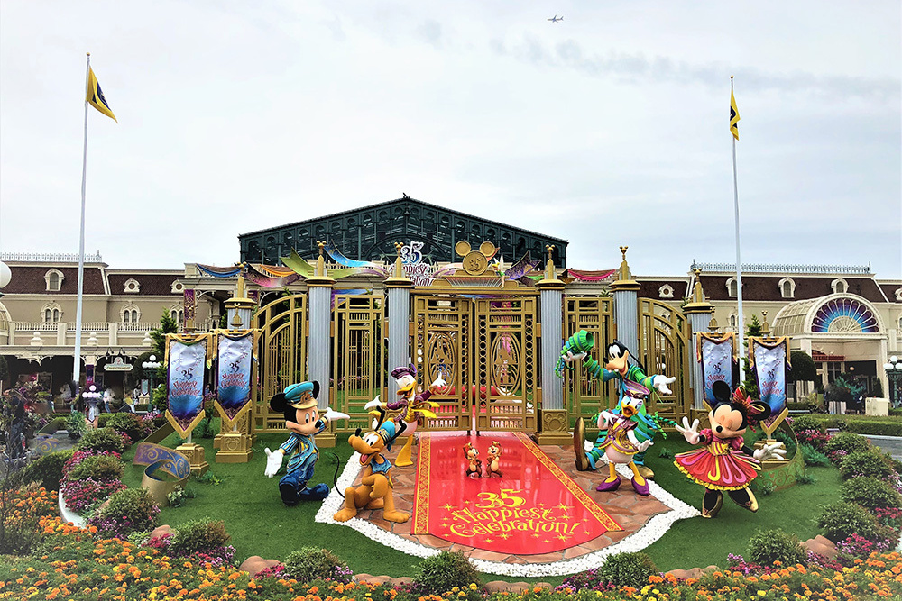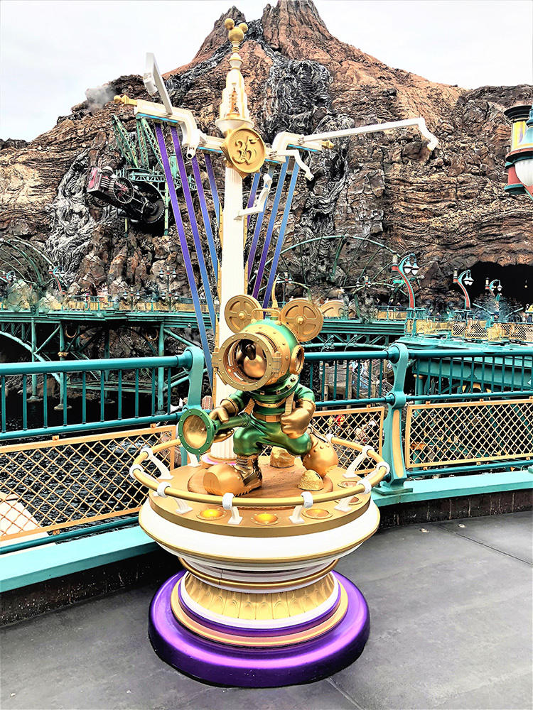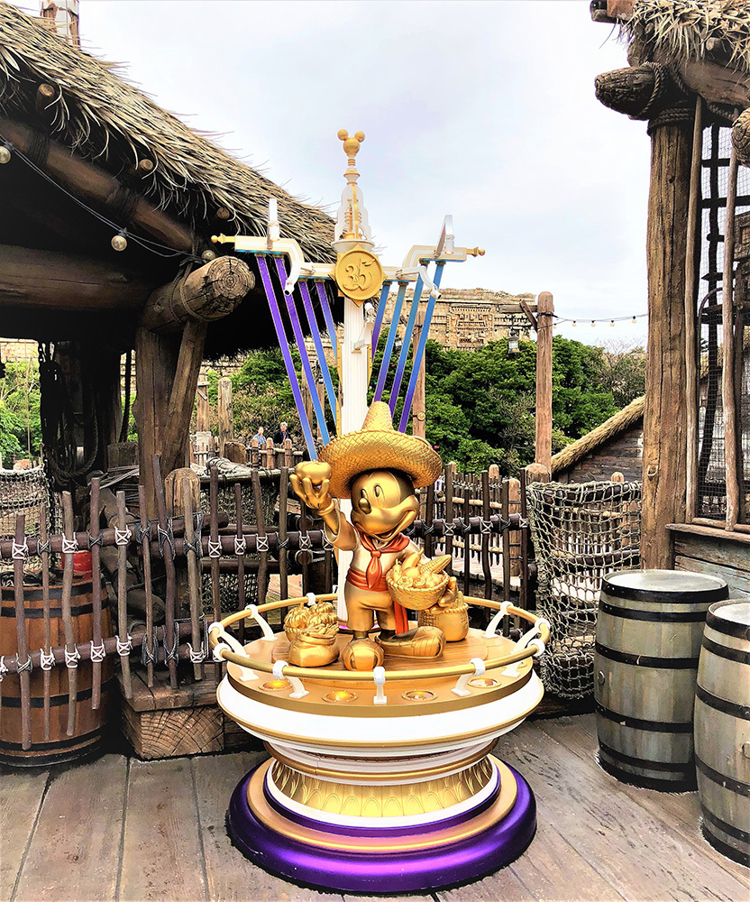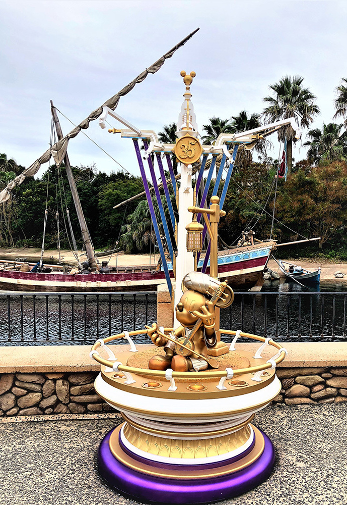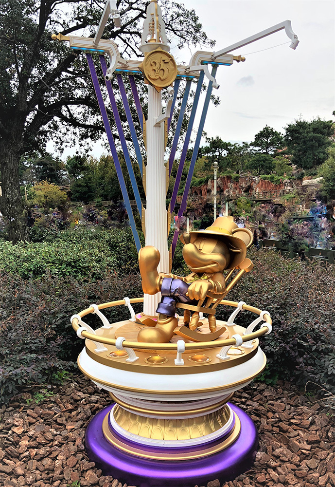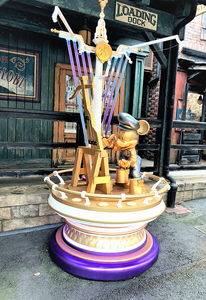また、35周年のオブジェとして、ゴールドのミッキー像が