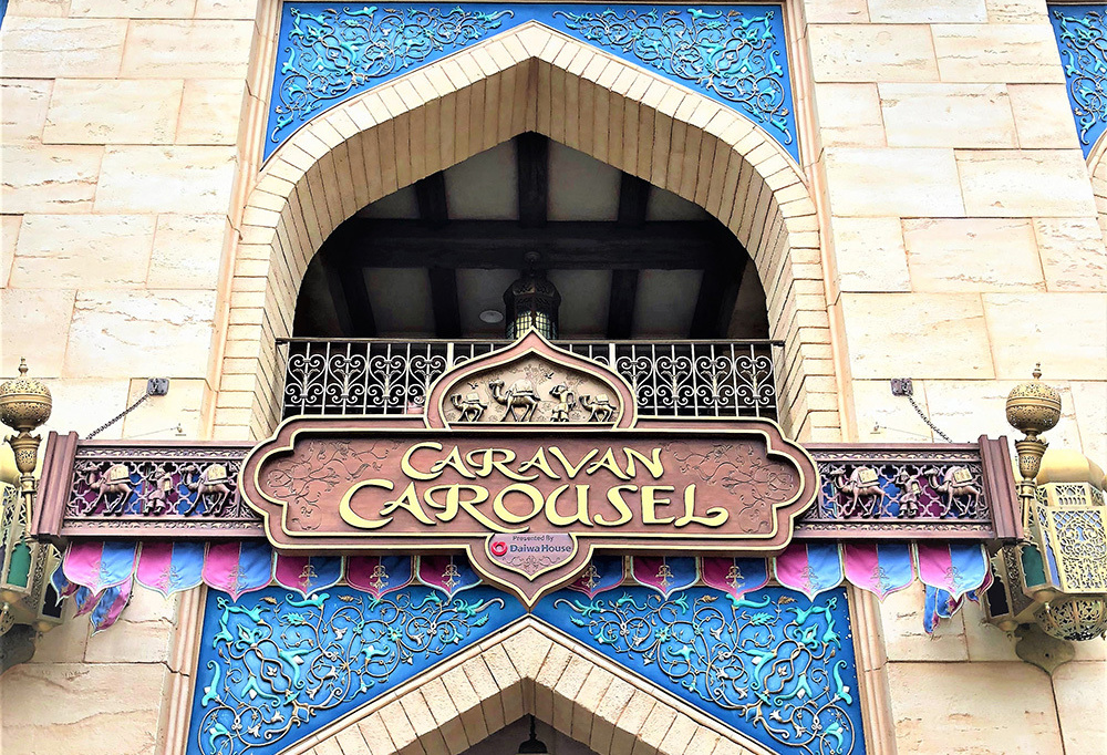 の楽しみ方やうんちくはそれぞれファンの数だけあるので、偉そうに述べるつもりはさらさらないが、私なりに好きなものを少しお話ししたいと思う。必ずチェックするアトラクションは、いわゆるメリーゴーランドである。何故か子供の頃から大好きで、ランドでもシーのアラビアンコーストでも子供よりはしゃいで木馬やジーニーにまたがっているのである。それから、シーの「トイズマニア」「インディ・ジョーンズ」とランドの「プーさんのハニーハント」も必須である。また、○○周年の記念には、必ず巾着を購入
