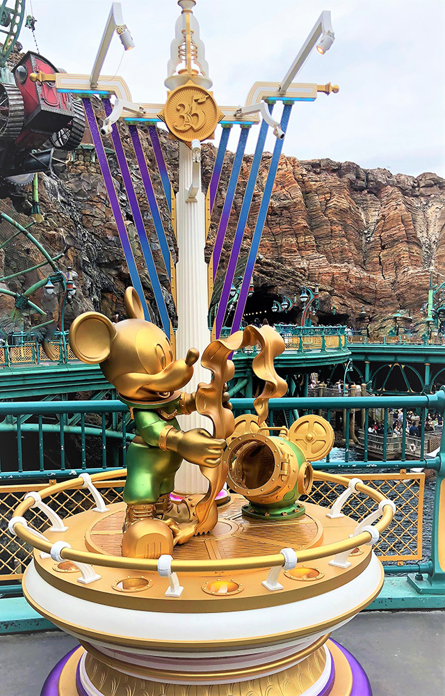 また、35周年のオブジェとして、ゴールドのミッキー像が