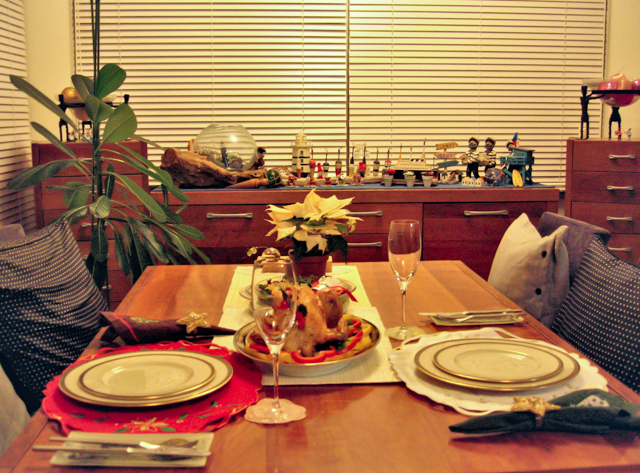 シティホテルで気取ってクリスマス・シャンパンもお洒落だが、おうちで、キッチンに立ちながら、あれこれ作って、好きな物を好きなだけいただくのも、また、楽しいクリスマスの過ごし方の一つであると思う。素材だけ贅沢なものを用意して、あとはシェフの腕まかせとし、テーブルセッティングに少々凝ってみると、それはそれで、「クリスマスらしい」ディナーに様変わりするから不思議である。