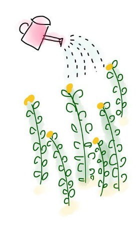 次に、薔薇は鉢から苗本体を掘り起こして、まとわりつく土を丁寧に取り除いて根だけにする。(この作業がとても大切であると、つたない経験から学んだ。古い土の塊をいい加減につけたまま植え替えても、美しい成長が望めなかったのである。)場合によっては、バケツに水をはり根ごと洗うこともある。鉢の土は枯入袋に全てあけ(出来れば、この時鉢も洗うと新たな気分になって良いのだが)、鉢の底にネットなどを敷き新しい土と肥料をまぜて鉢の1/4〜1/3程度まで入れる。その後土を払った苗を見栄え良く位置決めし、新しい土をかぶせていく。表面は押しつけずふんわりとかぶせる感じで、全体を整えたらジョウロで鉢の下から水が抜けるまで存分に水やりをし、次の鉢の作業が終わる頃2度目の充分な水やりをして完了。
